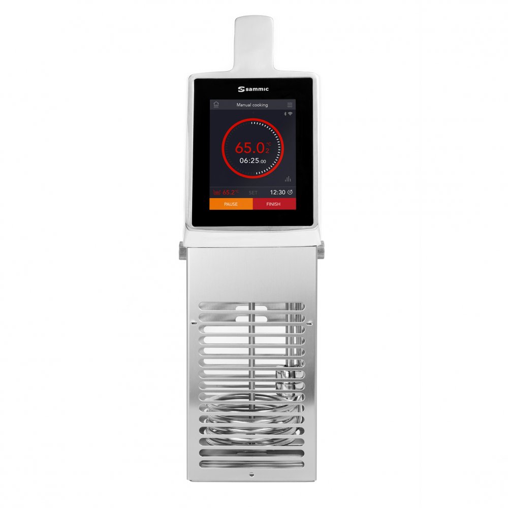 - Requiere muy poco tiempo de dedicación directa, permitiendo hacer otras cosas mientras el producto se está cocinando. Basta con programar temperatura y tiempo, SmartVide hará el resto. La pantalla táctil interactiva a todo color ofrece toda la información de un vistazo y hace que el funcionamiento sea extremadamente intuitivo. Además, gracias a la conectividad, se permite un intercambio de datos importantes para mejorar el rendimiento del chef.
